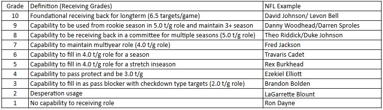 Running Back Receiving Matrix